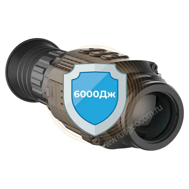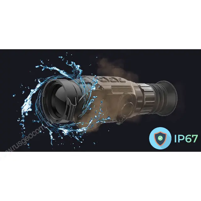 Прибор защищен от пыли, песка и дождя по классу IP66, что позволяет не беспокоится за его сохранность. За счет небольших размеров и веса он не утомляет при длительных наблюдениях и при активном движении по пересеченной местности. Разъем USB Type-C выручает охотников в длительных выездах, т.к. дает возможность организовать питание прицела от внешнего источника.