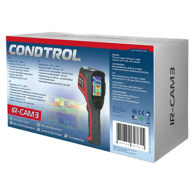 CONDTROL IR-Cam 3 – это универсальный прибор с разрешением ИК изображения 256×192px, предназначенный для измерения и визуализации распределения температур на поверхностях объекта в диапазоне от - 20°C до 550°C. Используемые при создании тепловизора инновационные технические решения позволили оптимизировать стоимость прибора. С его помощью вы сможете быстро и точно выявить места утечки тепла, обнаружить участки перегрева элементов механизмов, проводки, а также оценить теплоизоляционные свойства строительных конструкций.
