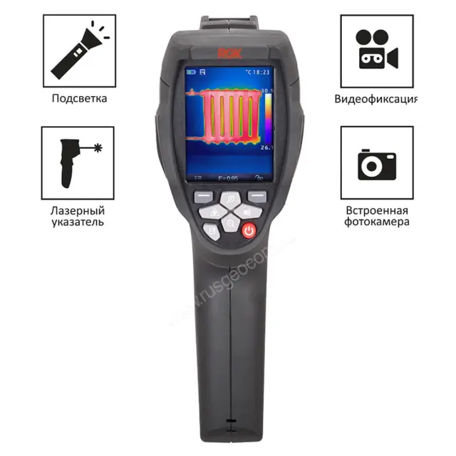Прибор отлично справляется с контролем утепления полов, может показывать среднюю, высокую и низкую температуру. Делает снимок места, сохраняет в памяти, есть ПО для работы на компьютере