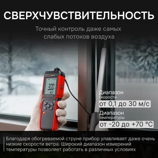 | Диапазон измерений скорости воздушного потока | от 0,1 до 30 м/с |