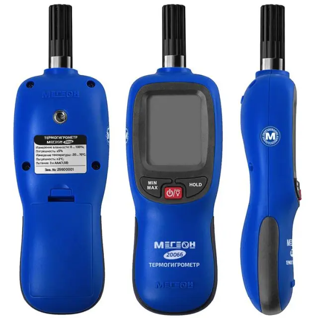 Термогигрометр МЕГЕОН 20066 – компактный прибор с батарейным питанием, предназначенный для мобильного контроля температурно-влажностных параметров окружающей среды. Обладая широкими измерительными диапазонами, от –20 до +70°С и от 0 до 100%, изделие может применяться на открытом воздухе для атмосферных измерений и в помещениях, в том числе в условиях присутствия неагрессивных газообразных веществ. Модель внесена в Госреестр СИ и допускается для использования при проведении экспертиз, выполнении мероприятий санитарного контроля в учебных заведениях, общественных помещениях и т.п., а также в ходе аттестации рабочих мест после поверки в аккредитованных метрологических органах.