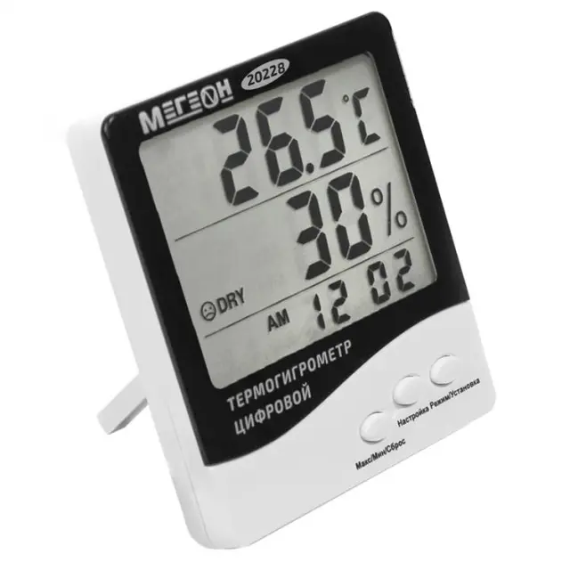 Термогигрометр настольный цифровой МЕГЕОН 20228 с поверкой