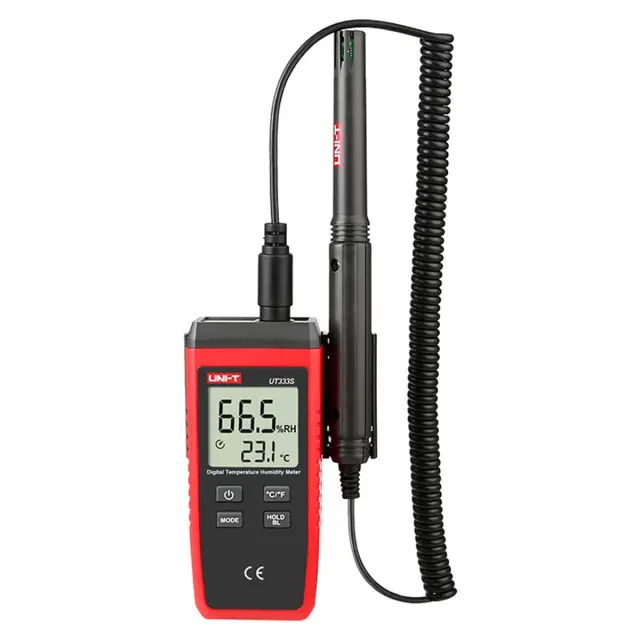 Термогигрометр UNI-T UT333S – это надежный прибор для точного контроля параметров окружающей среды. Он идеально подходит для использования в домашних условиях, на складах, в лабораториях, теплицах, медицинских учреждениях и при транспортировке чувствительных грузов. Модель оснащена выносным датчиком с пружинным кабелем, что позволяет размещать оборудование в труднодоступных местах или на определённом расстоянии от основного блока, обеспечивая удобство и точность измерений.