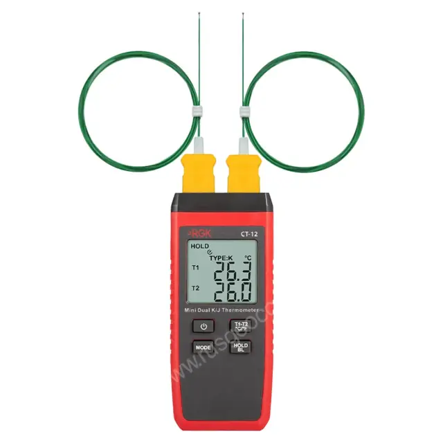 Дорогостоящая вещь, но измеряет максимально точно, на дисплее t с точностью до десятых, компактный, в кармане удобно носить, с зондом можно мерить t внутри приборов или жидкостей и других целей.
