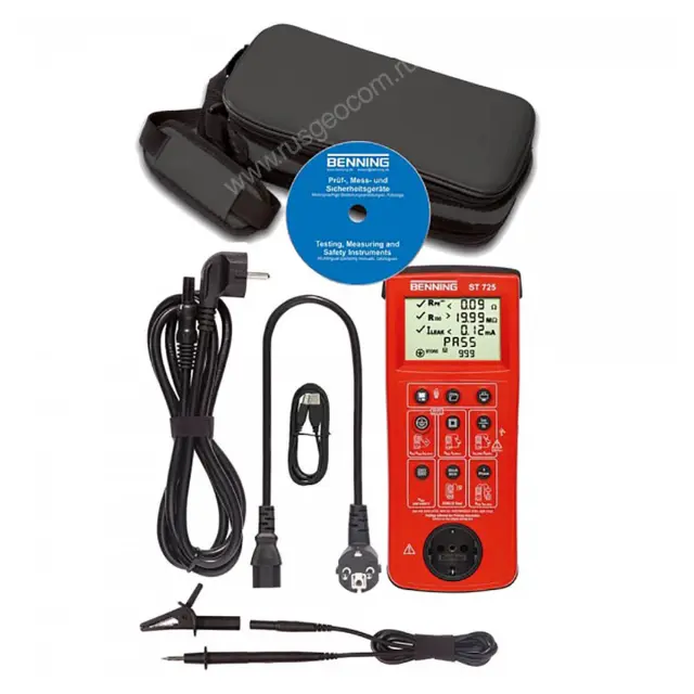 Благодаря полной автоматизации измерений тестер электрооборудования BENNING ST 725 характеризуется высокой производительностью. Прибор самостоятельно сравнивает получаемые результаты с нормированными показателями, с выводом на экран сообщения в виде “годен” - “негоден”, что исключает вероятность субъективной ошибки.