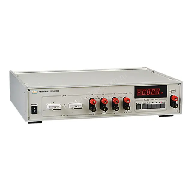 Токовый шунт АКИП-7501 относится к приборам высокоточного класса для прецизионных лабораторных измерений, сертификационных испытаний электроэнергетического оборудования и т.п. Устройство может использоваться в метрологической практике как эталонная мера в ходе поверки или калибровки средств измерения силы тока.