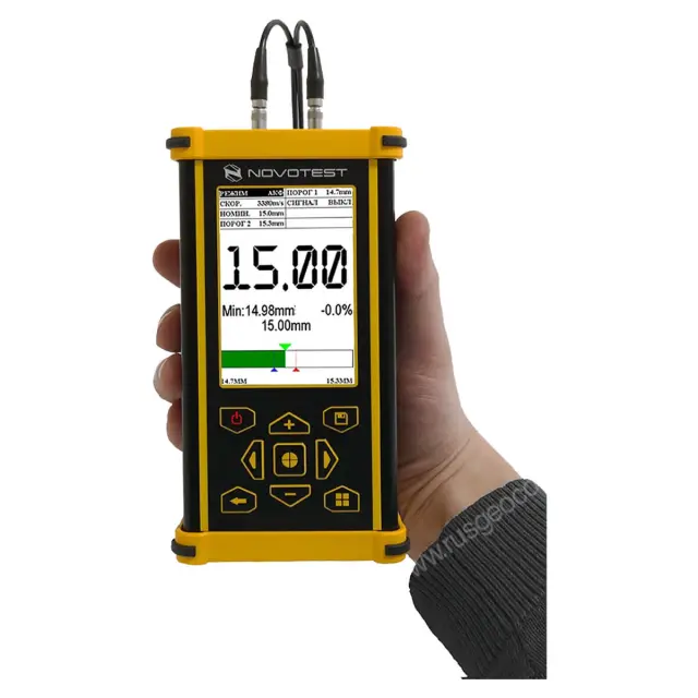 Эта модификация толщиномера NOVOTEST выполнена в прочном корпусе из металла для работы в производственных условиях и отличается от младших моделей функцией отображения А и B-сканов, необходимой для замеров со строгими допусками по точности. Благодаря таким возможностям прибор может частично заменить дефектоскоп.