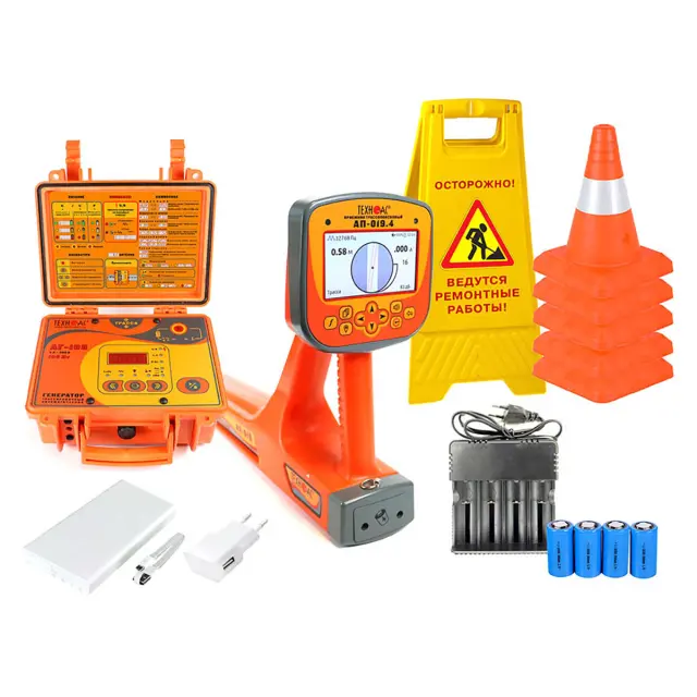| Варианты подключения к исследуемой коммуникации | "контактное" подключение с "возвратом тока через землю" "бесконтактное" подключение с применением встроенной передающей антенны "LC" "бесконтактное" подключение с применением внешней индукционной передающей антенны "АН" (интенсивность излучения выше и доступ к коммуникации удобнее относительно встроенной передающей антенны "LC") "бесконтактное" подключение с применением индукционных передающих клещей (возможен выбор кабеля из пучка) |