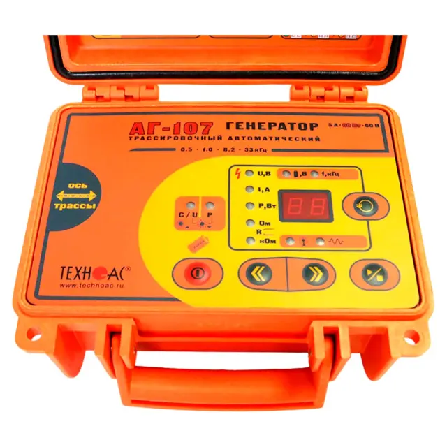 | Варианты подключения к исследуемой коммуникации | "контактное" подключение с "возвратом тока через землю" "бесконтактное" подключение с применением встроенной передающей антенны "LC" "бесконтактное" подключение с применением внешней индукционной передающей антенны "АН" (интенсивность излучения выше и доступ к коммуникации удобнее относительно встроенной передающей антенны "LC") "бесконтактное" подключение с применением индукционных передающих клещей (возможен выбор кабеля из пучка) |