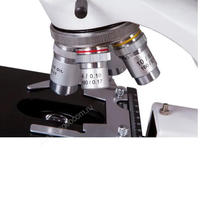 - 3 Объективы ахроматические: 4х, 10х, 40xs, 100хs (масляный) с антигрибковым покрытием