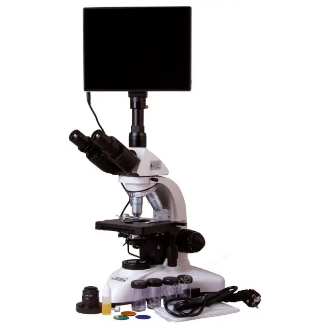 Наличие дисплея позволяет наблюдать за материалом в мельчайших подробностях, а также записывать видео и фото. Кроме этого, используя в качестве средства наблюдения не объектив, а монитор, вы снизите нагрузку на глаза, а также можете использовать биологический микроскоп Levenhuk MED D25T LCD как наглядное пособие в обучении, демонстрируя процесс перед аудиторией.