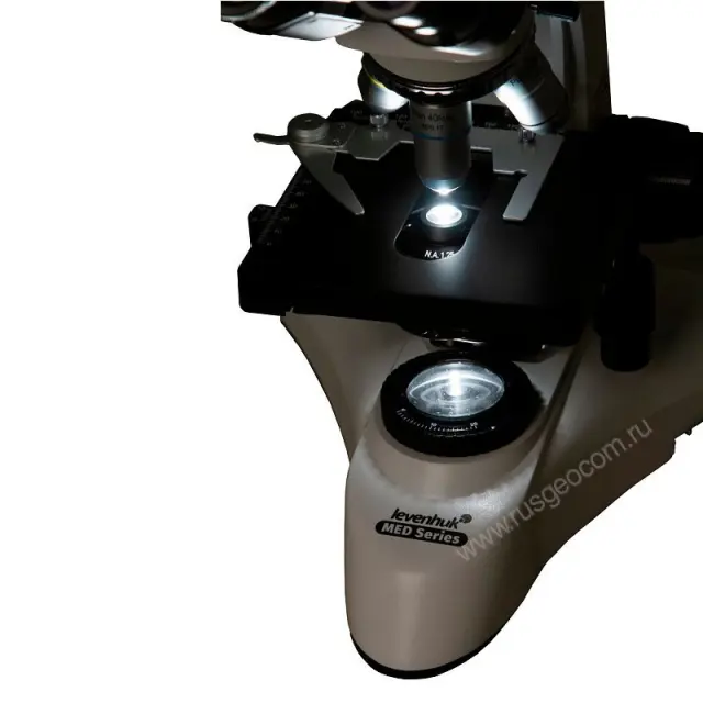 Исследование бактерий, других живых микроорганизмов и прозрачных объектов возможно благодаря наличию в комплекте темнопольного конденсора, который можно установить на место стандартного. При наблюдении таким способом исследуемый материал отображает а темном поле.