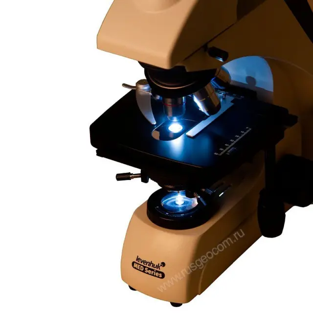 Наклон наблюдательной части цифрового микроскопа на 30° позволяет снизить нагрузку с шеи и плеч при долговременных исследованиях. Также все оптические элементы устройства имеют покрытие, защищающее от грибка, что очень полезно при биологических экспериментах.