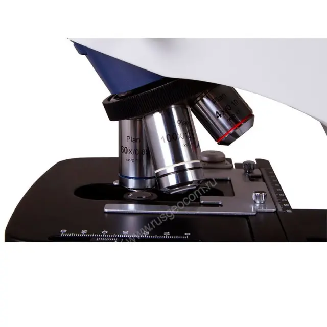 - 3 Объективы планахроматические, скорректированные на бесконечность: 4x, 10x, 40xs, 60xs, 100xs (масляный) с антигрибковым покрытием
