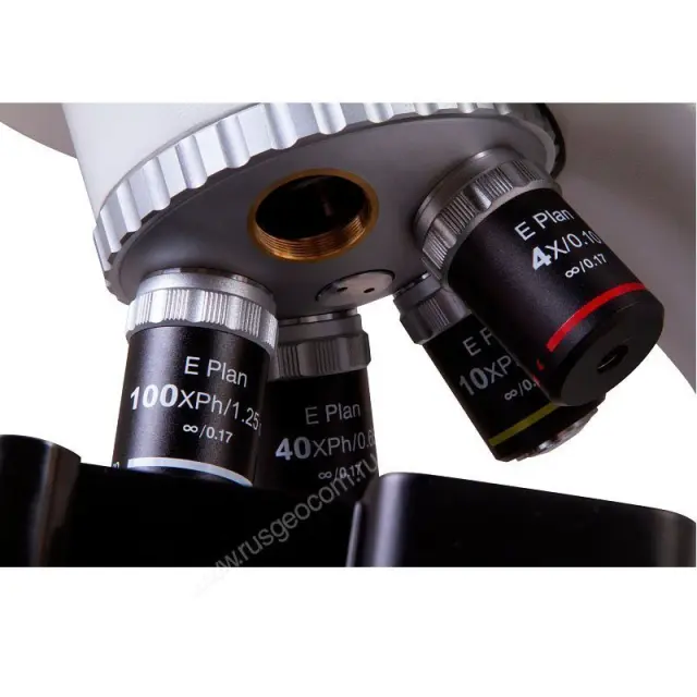 - 3 Объективы фазовые планахроматические, скорректированные на бесконечность: 4x, 10x, 40xs, 100xs (масляный) с антигрибковым покрытием