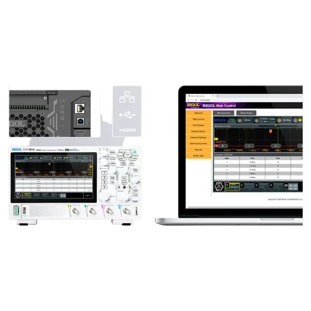 Цифровой осциллограф RIGOL DHO814 – компактный прибор с 7-дюймовым сенсорным дисплеем, который отличается от других лабораторных устройств своего ценового диапазона улучшенными характеристиками и расширенной функциональностью. Он оснащен четырьмя аналоговыми каналами с полосой пропускания 100 МГц и обеспечивает 12-битное разрешение по вертикали при максимальной частоте дискретизации 1,25 Гвыб/с на один канал и при скорости захвата до 1 000 000 осциллограмм/с, обеспечивая возможность визуального исследования динамичных сигналов сложной формы при решении широкого круга задач. Расширенный набор интерфейсов позволяет легко интегрировать изделие в состав измерительных систем и автоматизированных установок, обеспечивая совместное функционирование с другим лабораторным и компьютерным оборудованием.