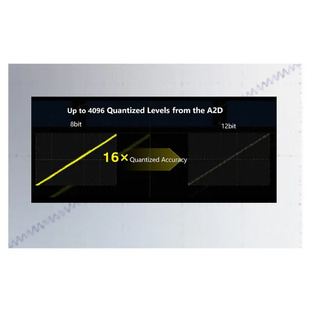 Эта модель предлагает 12-разрядное разрешение, что позволяет получать детализированные данные с высоким уровнем точности, что особенно важно при проведении сложных измерений, где даже малейшие отклонения могут сказаться на конечных результатах. Благодаря отличному уровню шума и точности вертикальных измерений, пользователи могут быть уверены в качестве получаемых данных.