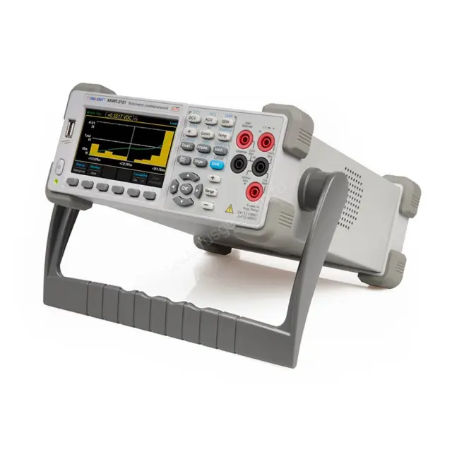 Вольтметр АКИП-2101/1 относится к категории стационарных лабораторных приборов. С его помощью можно выполнять измерения с высокой точностью и скоростью. Он измеряет напряжение и силу тока в электрических приборах, позволяет определить сопротивление и частоту, а также температуру при подключении к нему термопар соответствующего типа.