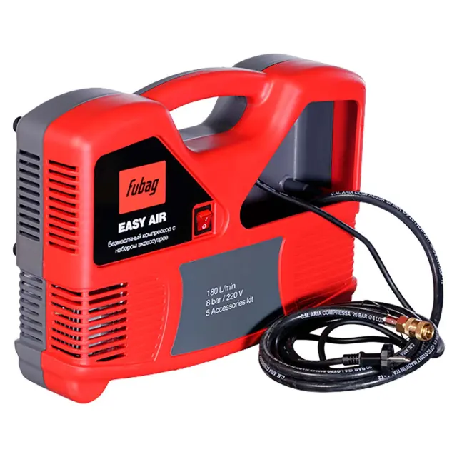 Безмасляный компрессор Fubag Easy Air - это надежное и удобное устройство, которое поможет вам справиться с различными задачами. Благодаря его компактности, вы всегда сможете иметь его под рукой и использовать в любое время. Если вы ищете компактное и удобное устройство для выполнения быстрых ремонтных работ или покраски, эта модель - идеальный выбор. С помощью агрегата вы сможете получить производительность до 180 л/мин, несмотря на его небольшие размеры и легкий вес.
