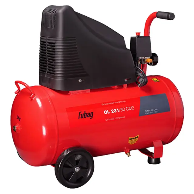 Еще одним преимуществом FUBAG OL 231/50 CM2 является встроенный фильтр, который повышает качество воздуха. Это особенно важно при работе с чувствительными инструментами или в условиях, где чистота воздуха играет решающую роль. Манометр, расположенный на корпусе, позволяет вам всегда быть в курсе текущего давления в ресивере.